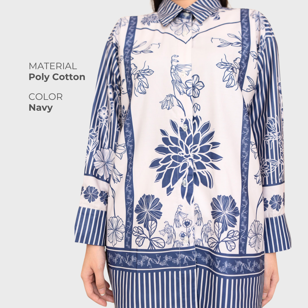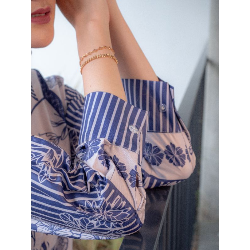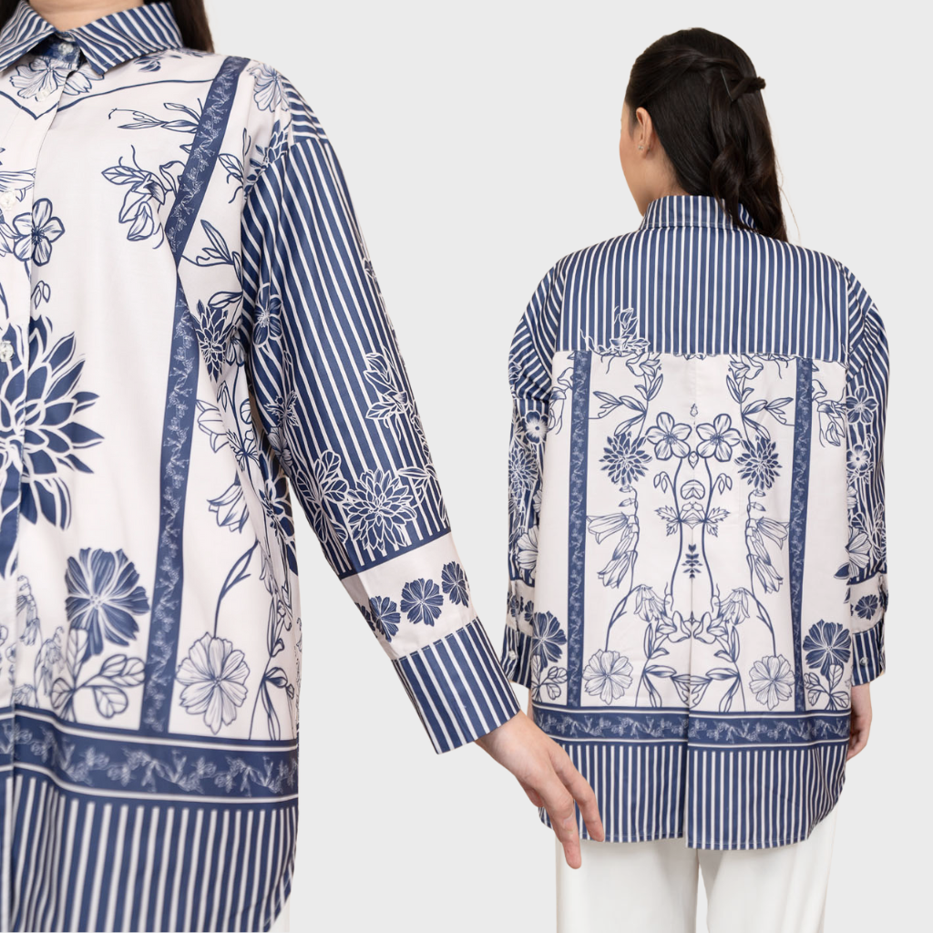 palcement pattern gabungan antara stripe dan floral menjadikan shirt ini lebih statment.