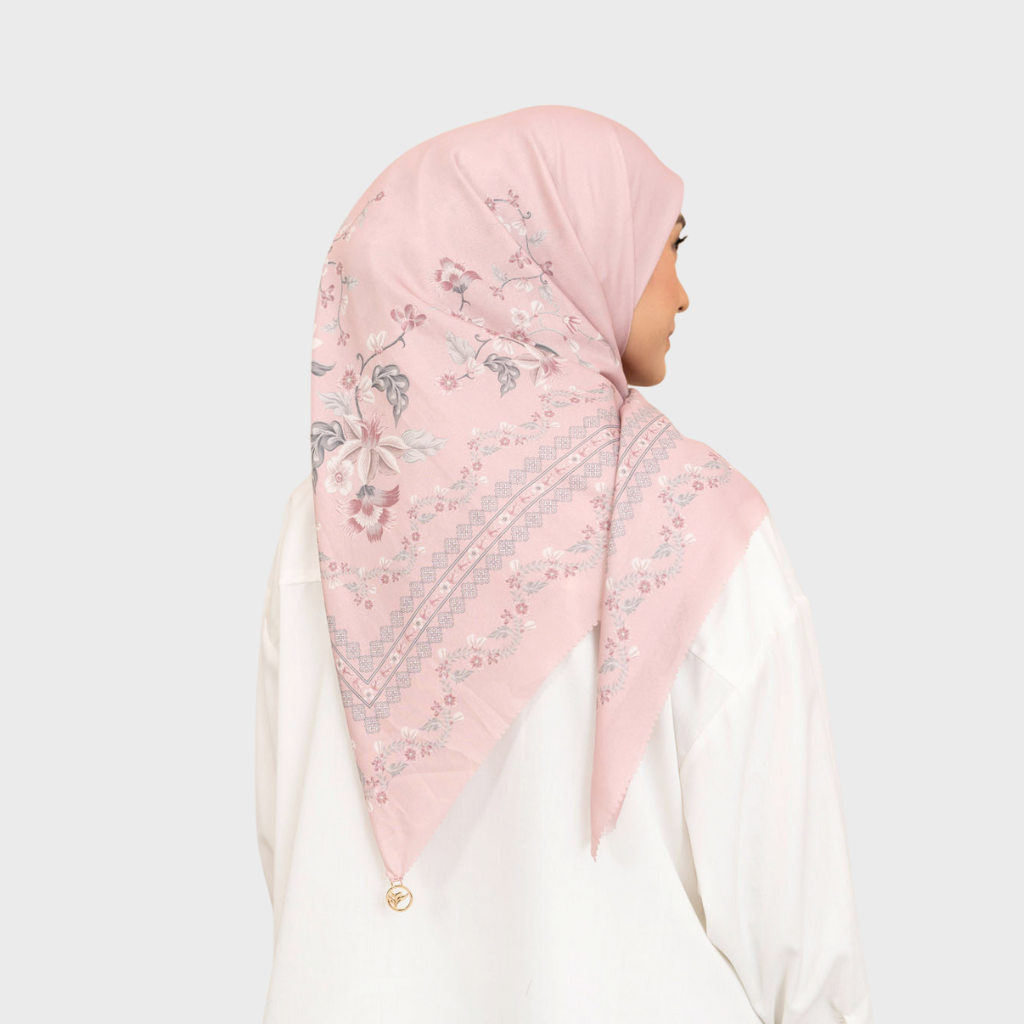 classic scarf pattern dengan details floral dan border dilengkapi dengan warna pastel chic namun tetap statment. scarf bebahan voal premium, ringan, adem dan mudah dibentuk