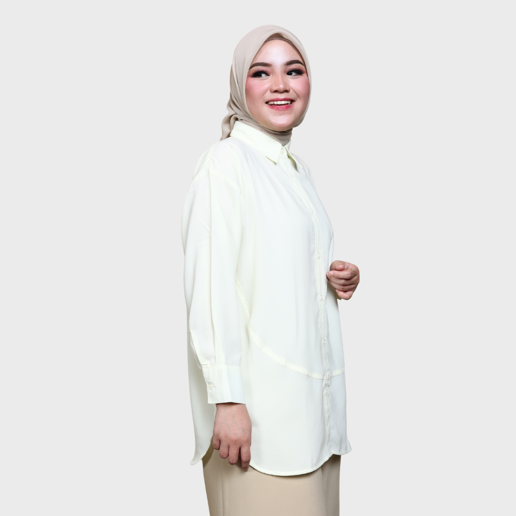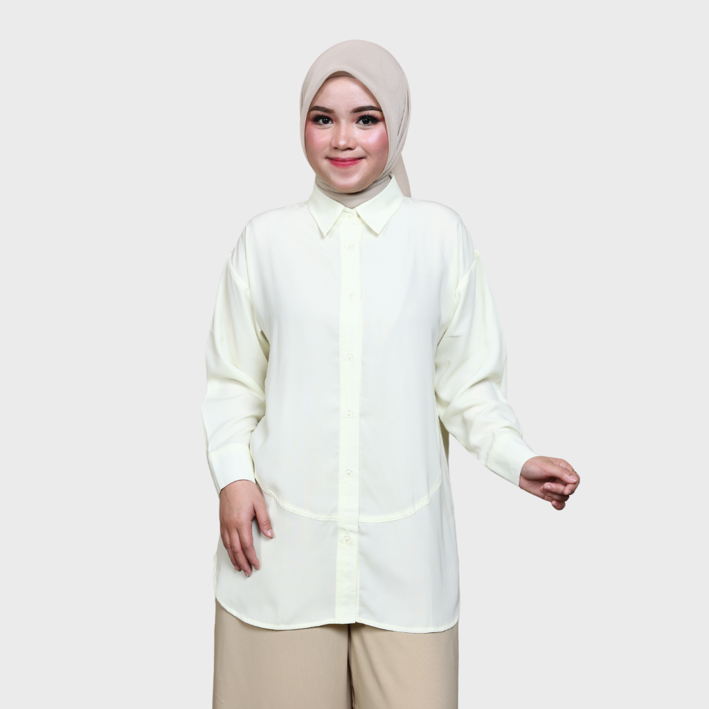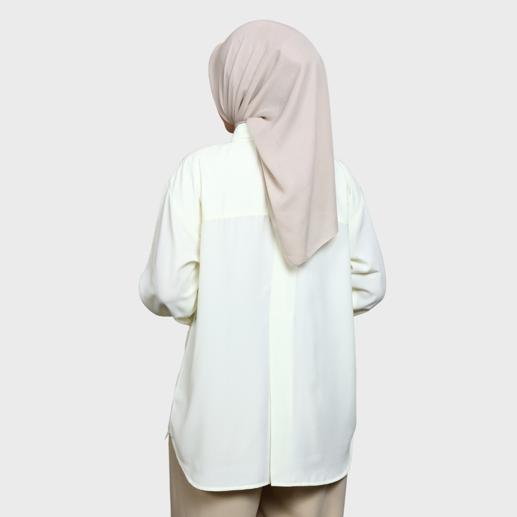 basic shirt dengan cuttingan rounded dan details flowy pada badan belakang