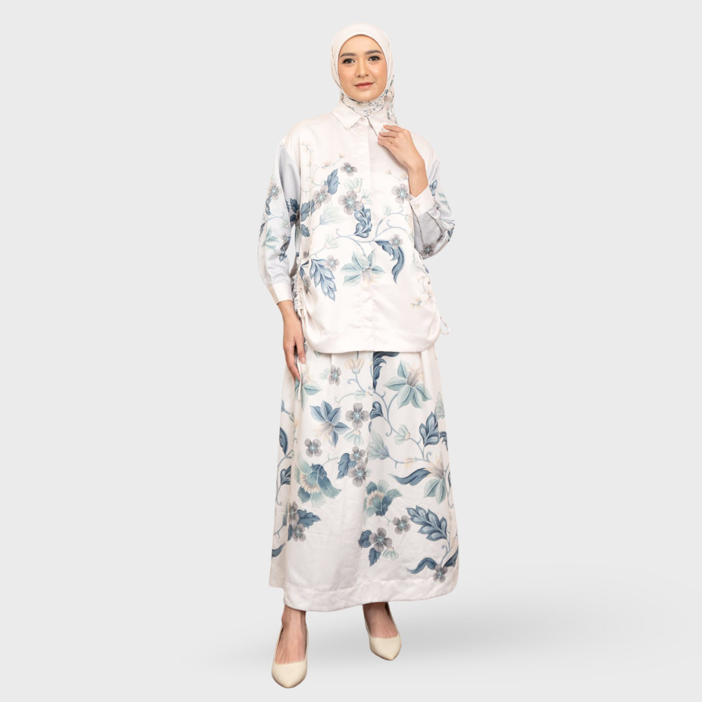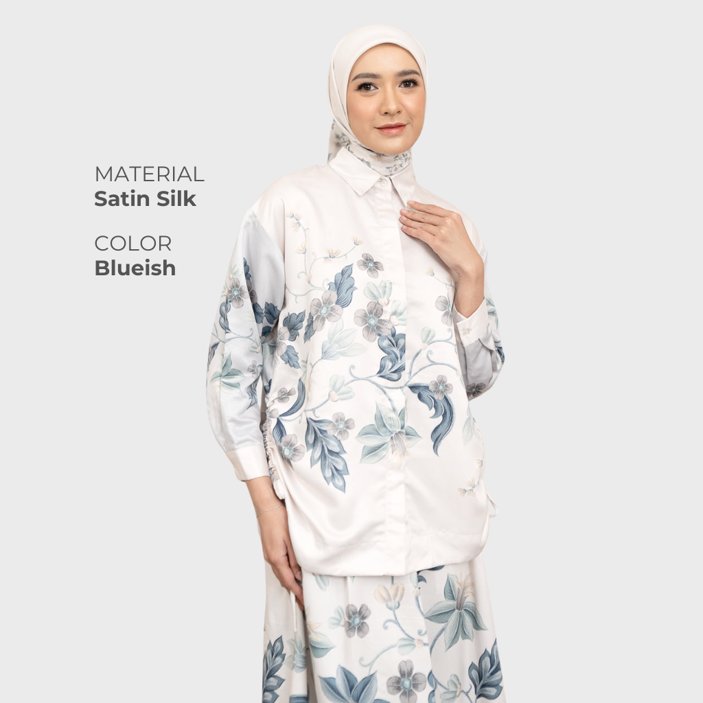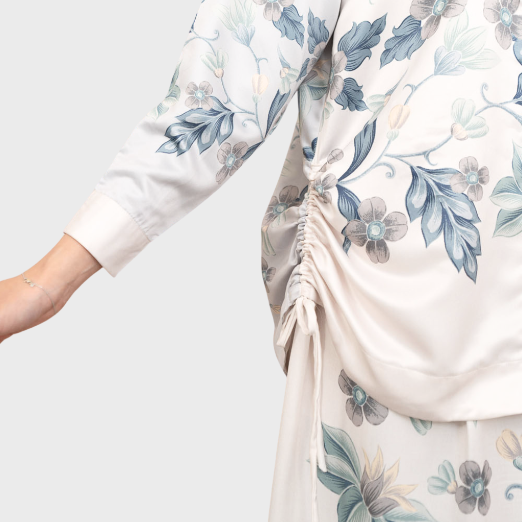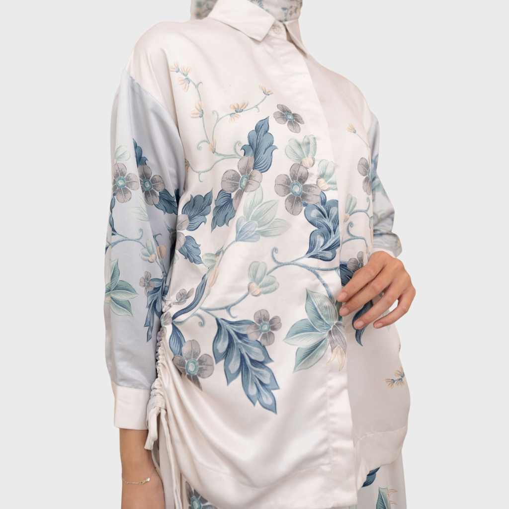 Crop shirt dengan detail drawstring untuk mempertegas dan membuat drapery alami pada siluet baju